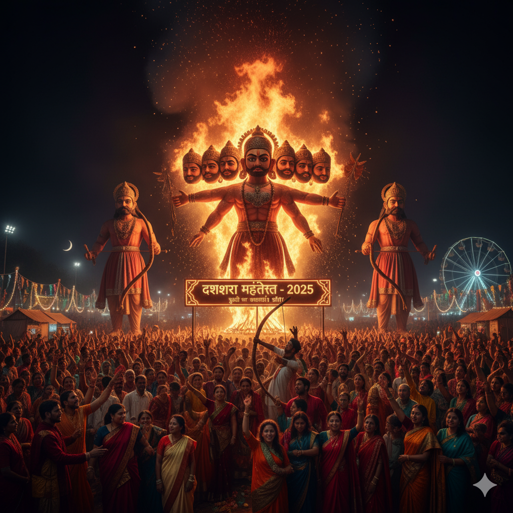 रावण दहन (Ravan Dahan) का कार्यक्रम शाम को सूर्यास्त के बाद शुरू होगा। यह हमें याद दिलाता है कि अहंकार, क्रोध और अन्याय हमेशा पराजित होते हैं।