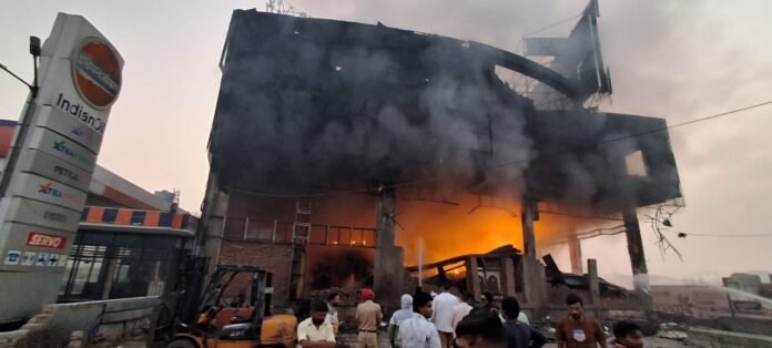 जालंधर (सिमरन) फिल्लौर के मशहूर डेरा मैया भगवान जी के बिल्कुल नजदीक बिल्डिंग में भयानक आग लग गई। आग की सूचना तुरंत फायर ब्रिगेड को दी गई, जिस पर लुधियाना, फिल्लौर और फगवाड़ा से करीब 2 दर्जन फायर ब्रिगेड की गाड़ियां आग पर काबू पाने के लिए पहुंचीं।जानकारी के मुताबिक, रात करीब 1 बजे अचानक बिल्डिंग में आग लग गई, जिस पर काबू पाने के लिए फायर ब्रिगेड की ओर से कोशिश की जा रही है, लेकिन 6-7 घंटे बाद भी आग पर काबू नहीं पाया जा सका है। फिलहाल आग से किसी भी तरह के जानी के नुकसान की कोई सूचना नहीं है। आग लगने का कारण अभी तक पता नहीं चल पाया है।बताया जा रहा है कि इस बिल्डिंग में कबाड़ पड़ा हुआ था, जिसके ठीक बगल में इंडियन ऑयल का पेट्रोल पंप है। इस बिल्डिंग के पीछे मैया भगवान जी का डेरा भी है, जहां बड़ी संख्या में लोग दर्शन करने आते रहते हैं। समाचार लिखे जाने तक आग पर काबू पाने का प्रयास जारी है।