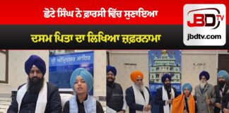 ਛੋਟੇ ਸਿੰਘ ਨੇ ਫ਼ਾਰਸੀ ਵਿੱਚ ਸੁਣਾਇਆ ਦਸਮ ਪਿਤਾ ਦਾ ਲਿਖਿਆ ਜ਼ਫ਼ਰਨਾਮਾ