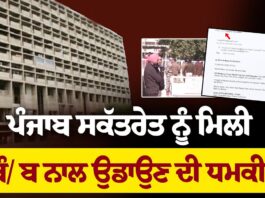 ਪੰਜਾਬ ਸਕੱਤਰੇਤ ਨੂੰ ਮਿਲੀ ਬੰ/ ਬ ਨਾਲ ਉਡਾਉਣ ਦੀ ਧਮਕੀ