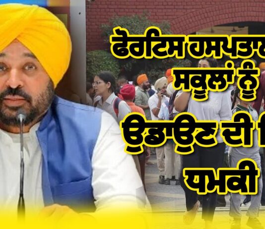 ਪੰਜਾਬ ‘ਚ ਦਹਿਸ਼ਤ: Fortis Hospital ਅਤੇ ਕਈ ਸਕੂਲਾਂ ਨੂੰ ਬੰਬ ਨਾਲ ਉਡਾਉਣ ਦੀ ਮਿਲੀ ਧਮਕੀ, ਜਾਂਚ ਜਾਰੀ