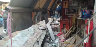 चार पांच दुकानों और वाहनों पर अचानक गिरी दिवार , हुआ...