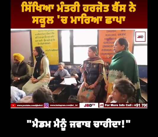 ਸਿੱਖਿਆ ਮੰਤਰੀ ਹਰਜੋਤ ਬੈਂਸ ਨੇ ਸਕੂਲ ‘ਚ ਮਾਰਿਆ ਛਾਪਾ: “ਮੈਡਮ ਮੈਨੂੰ ਜਵਾਬ ਚਾਹੀਦਾ!”