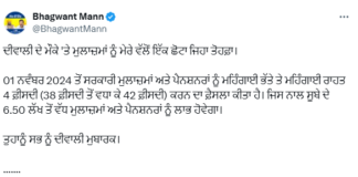 पंजाब डेस्क : पंजाब सरकार ने दिवाली पर सरकारी कर्मचारियों को बड़ा तोहफा दिया है. पंजाब सरकार ने DA में 4 फीसदी की बढ़ोतरी...